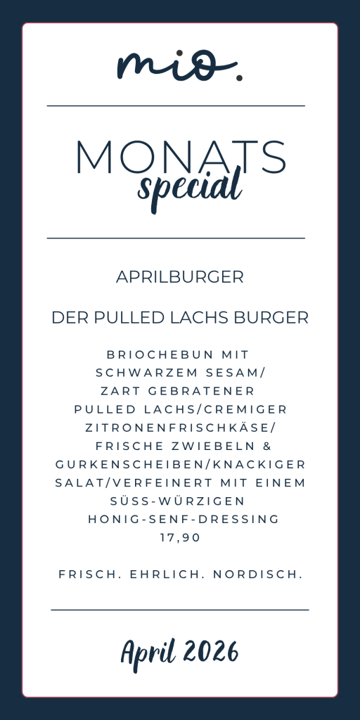 Unser Mio – der “Mittelpunkt im Ort” – ist weit mehr als ein kleines Bistro im Herzen von Hude. Es ist der Ort, an dem sich die Huder treffen, lachen und die schönen Seiten des Lebens genießen. Mit viel Leidenschaft und Liebe zum Detail stehen wir hinter allem, was wir tun – und das schmeckt man!