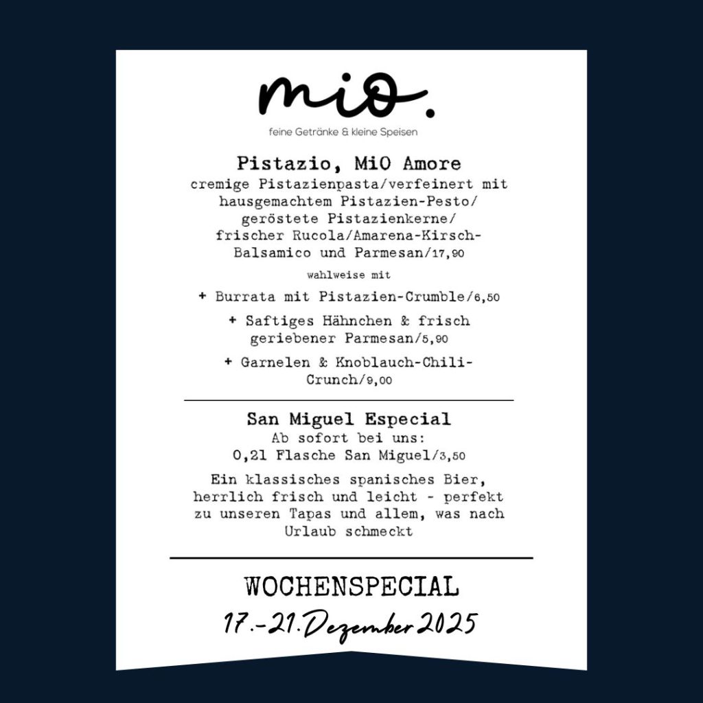 Kommt vorbei, entdeckt uns immer wieder neu, und erlebt, was den “Mittelpunkt im Ort” ausmacht. Wir freuen uns auf euch und jeden neuen Gast, der Teil der Mio-Familie wird!